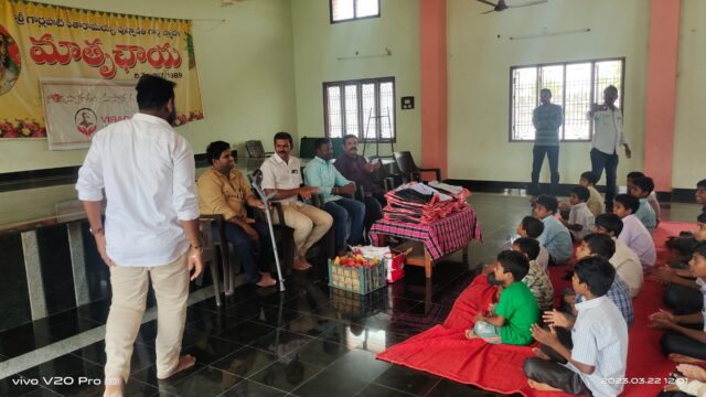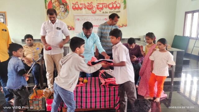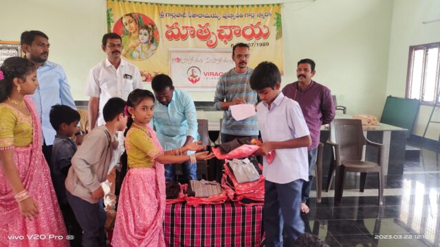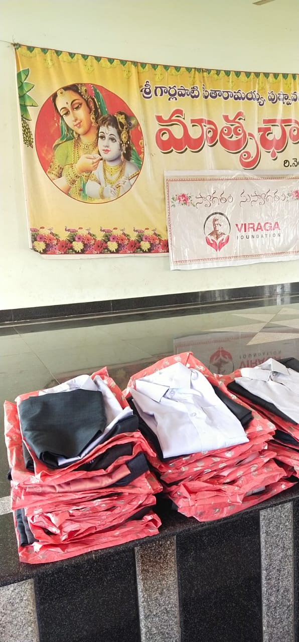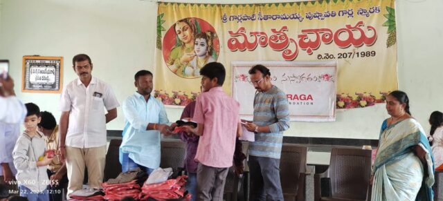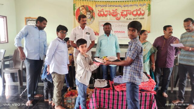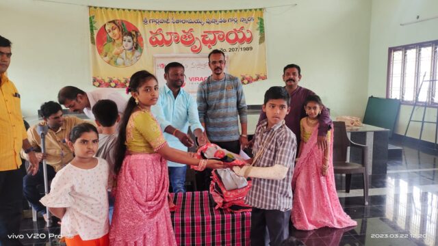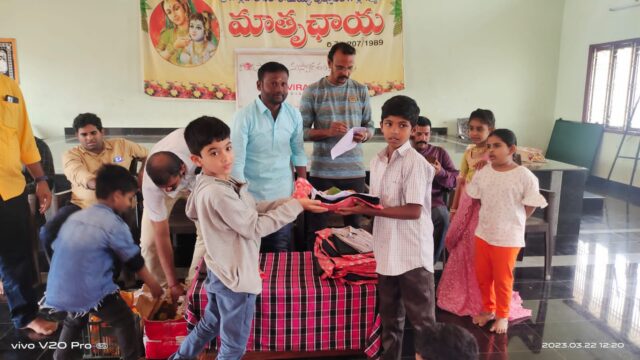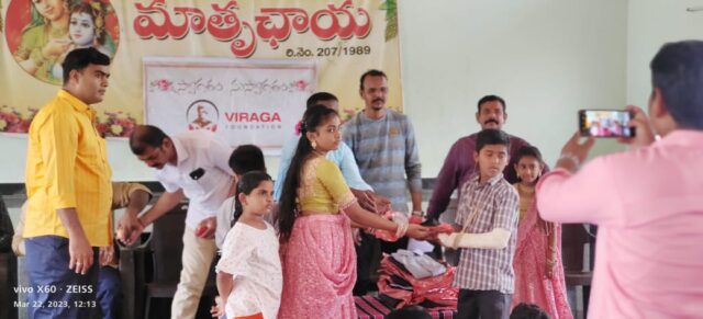 On March 22, 2023, in celebration of UGADI (Telugu Samvatsaraadi), Viraga Foundation organized a special donation drive to support underprivileged children. As part of this initiative, the foundation distributed new clothes and fresh fruits to single-parent children and orphans residing at Mathruchaya Organization.